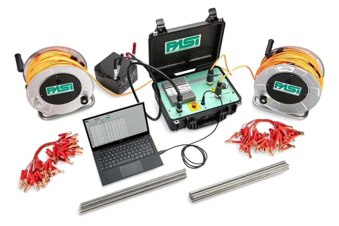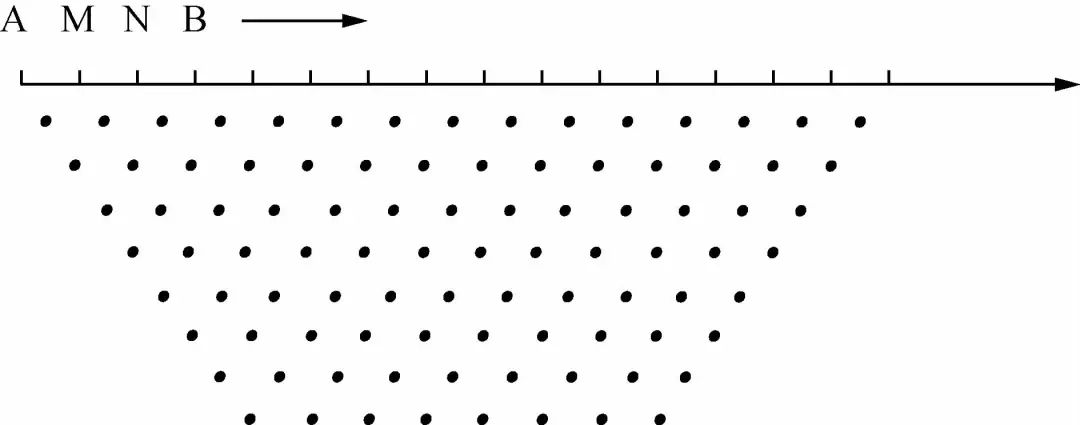 郭淑君等(2021)利用高密度电阻率法对雄安新区0〜200m第四系地层内发育的砂层透镜体、隐伏裂隙和塌陷等进行了探测研究,结合地质结构断面和高密度电阻率体深度切片,预测了古河道砂体分布。数据采用温纳α布极方式(图1)、利用WDJD-2高密度电法仪进行测量,电偶极矩10m,测区共布置东西向13条测线、南北向8条测线,呈网格状分布。