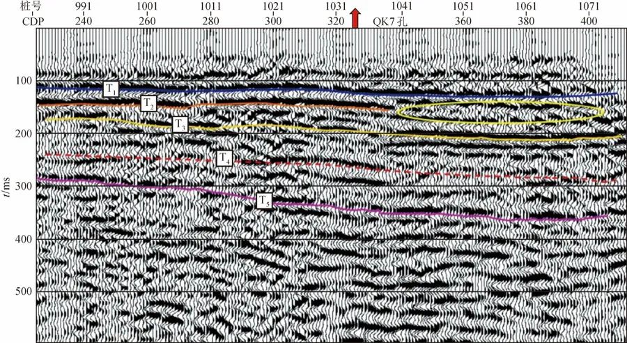 陈松等(2021)采用高精度地震勘探技术,以小吨位可控震源激发,综合试验震动台数、震动次数、扫频范围、驱动电平及偏移距等组合参数,获得了高品质地震数据,资料反射波组特征明显、连续性好,有效揭示了地层结构和埋深特征。