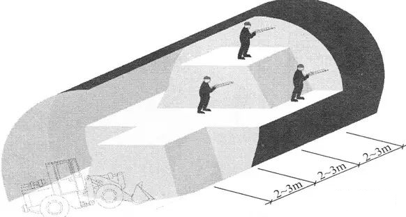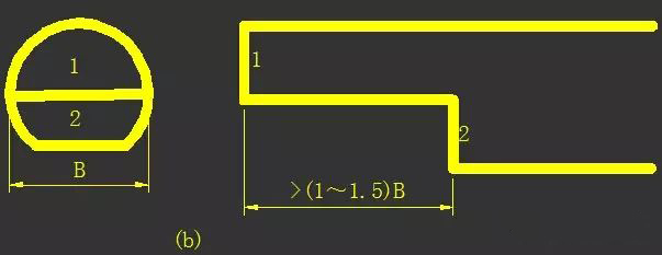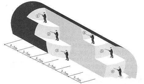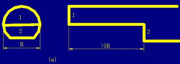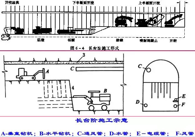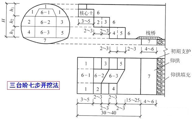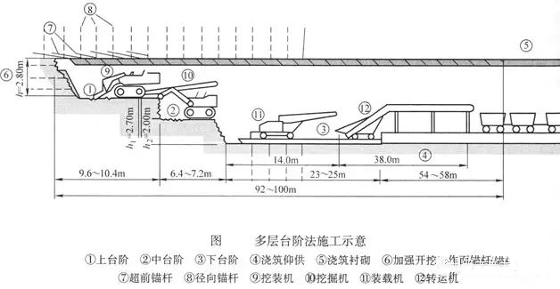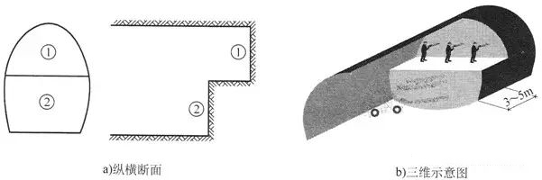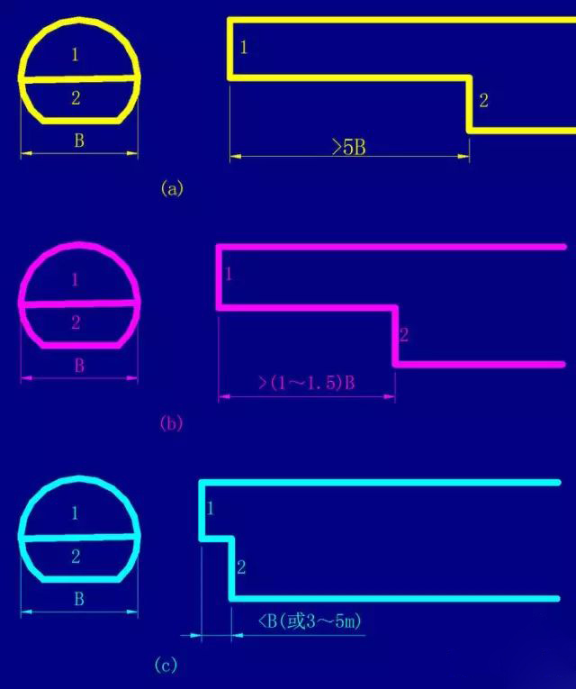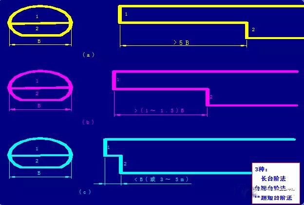 台阶长度:L≥5B,B为洞室的宽度。甚至可以上台阶先贯通,即为“半断面法”。