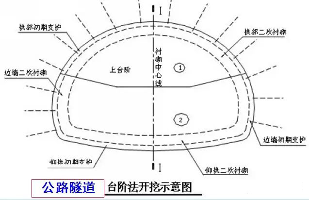 (1)环形开挖留核心土法(台阶分部开挖法)