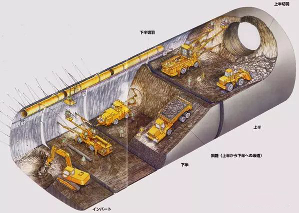 1)将断面分成上半断面和下半断面两部分-分别开挖;