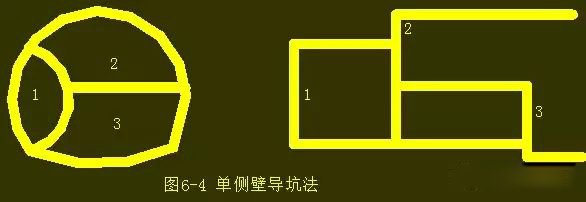 特点:沿一侧自上而下分2部或3部进行;每开挖一部及时施作锚喷支护、安设钢架、施作中隔壁;底部设临时仰拱;完成1~2部后即开始另一侧1~2部的开挖及临时支护;形成左右两侧开挖及支护相互交叉的情形。
