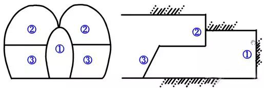 习惯标注方法:① 阿拉伯字1、2、3...表示挖掘; ② 罗马字Ⅰ、Ⅱ、Ⅲ...表示支护;