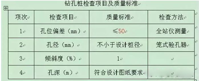 钻孔深度达到设计标高后,应对孔深、孔径进行检查,符合要求后方可清孔。