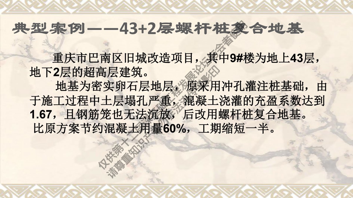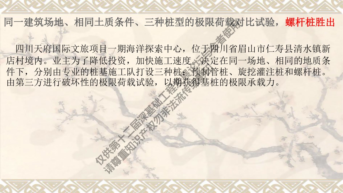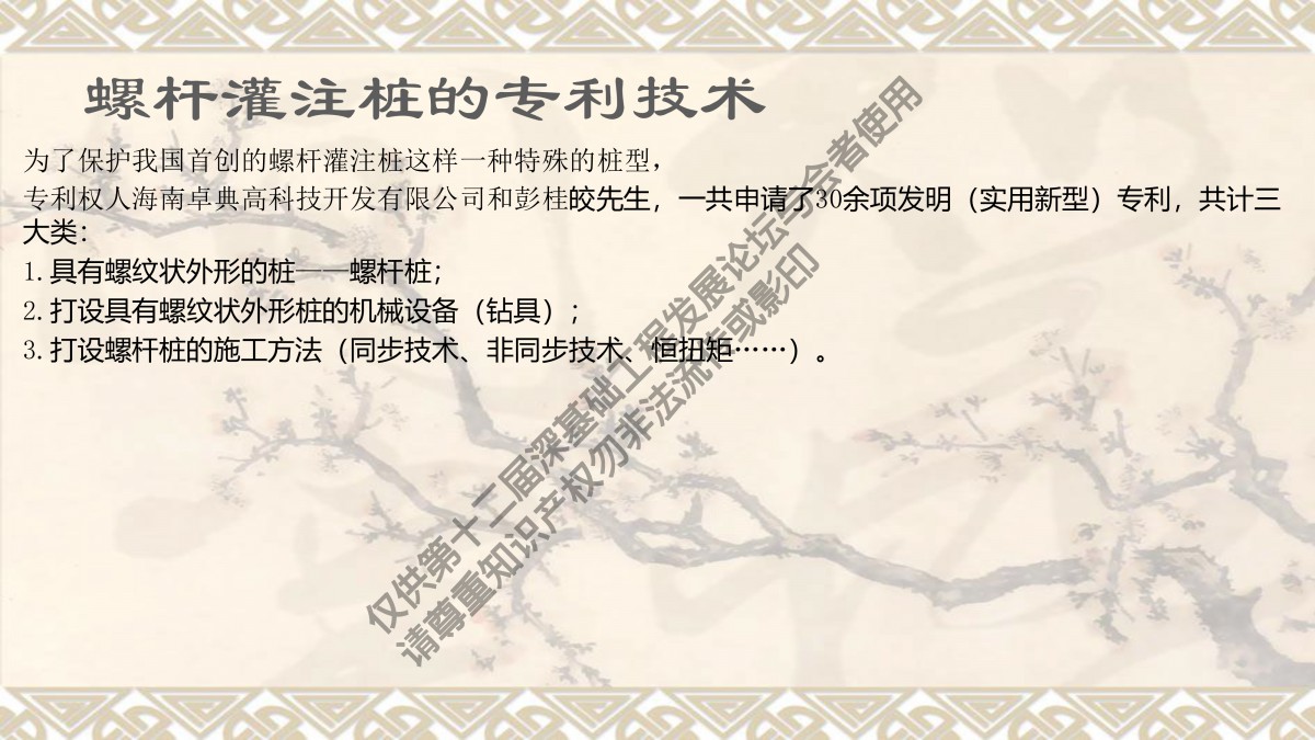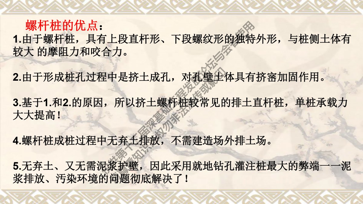 周教授于第十二届深基础工程发展论坛中分享的《螺杆灌注桩技术》