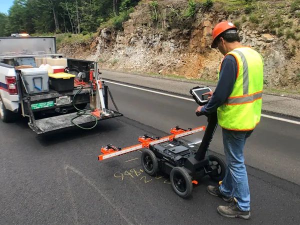 GSSI滚动密度仪(RDM)便是基于探地雷达路面反射波振幅比值法的一种压实度(介电常数)的测量设备,可以对路面进行连续介电常数测量。根据配置的高频天线数量(1-3个),可同时获得1-3条介电常数测线。