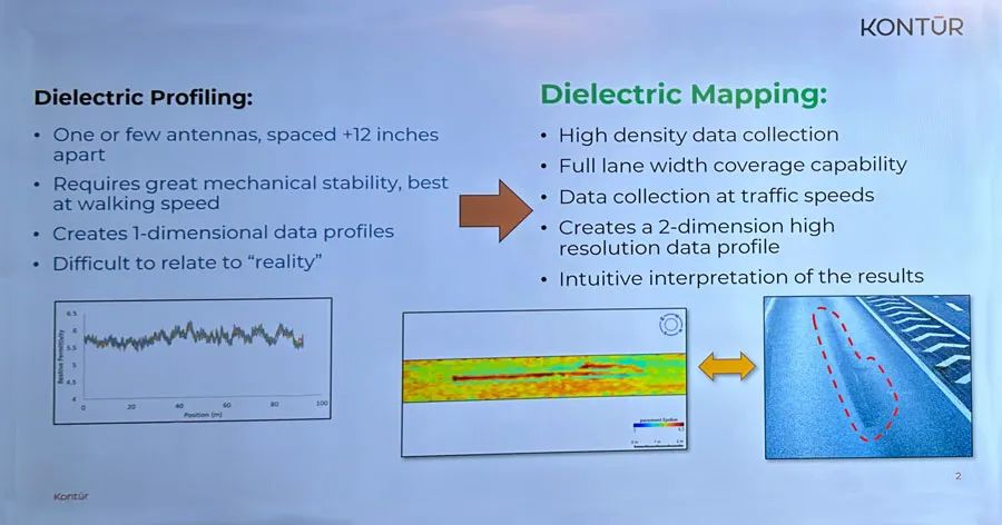 Kontur采用多通道天线阵技术,对路面全覆盖扫描,实现了整个路面的介电常数测量,极大地提高了检测效率和准确率。