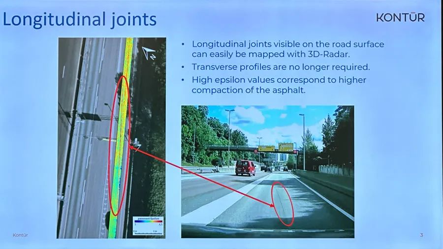 ●采用3D雷达的介电常数成图,可以很容易地看出纵向接缝