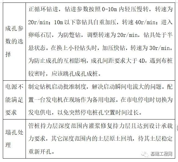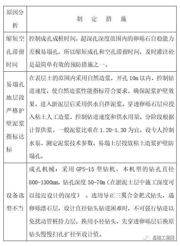 先施工钻孔桩,若塌孔使管桩的持力层有所流失,经过因果分析,找到导致塌孔的原因,经过分析讨论,制定措施如下表4-1:降低两类桩施工相互影响的措施。
