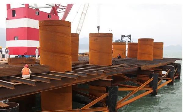 5.1.1钢护筒的沉放时机宜选择在平潮时进行;起吊前应确认导向架是否安放到位,氧割、电焊机等是否能正常使用。