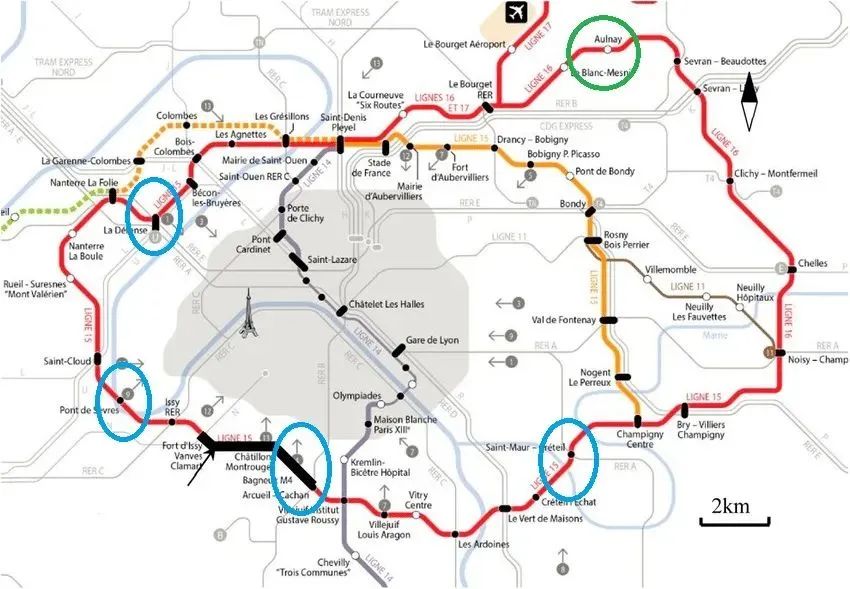 绿圈为Aulnay-sous-Bois试验竖井位置