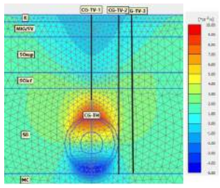施工团队还根据实验室和试验竖井的现场测量数据建立了有限元模型,以研究Beauchamp砂层环境中热参数和力学参数。团队采用Plaxis 2D Thermal软件并通过有限元法建立了热模型;在建立力学模型时,则将Beauchamp砂层的特殊性质纳入计算。最终,通过模型进行的回溯分析计算得出的地面变形与检测得出的地层变形数值与监测测量结果几乎一致。