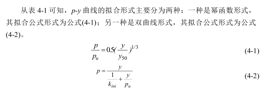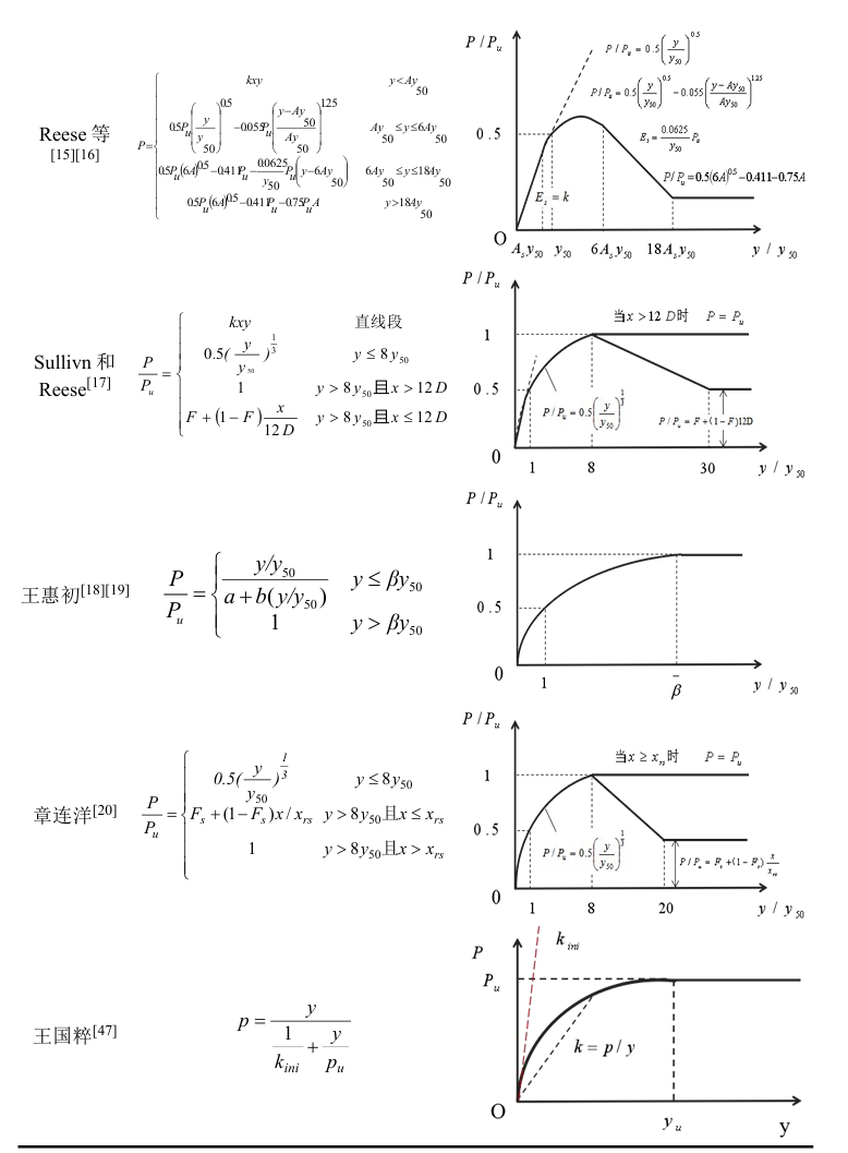 不同学者给出了不同的p-y曲线模型,部分学者提出的p-y曲线主要公式及曲线形式如下表4-1所示。