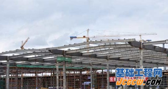 记者在工地现场看到,各种机械设备林立,钢筋和混凝土构成了这里的主基调,已经可以看出整个东站大致的建设规划。据南宁东站项目部项目经理王俊杰介绍,东站的地下结构已经基本结束,面积达到7.56万平方米的无柱站台雨棚钢体结构已经基本搭建完毕。作为整个东站建筑支柱的28根钢柱也已经全部立起来。