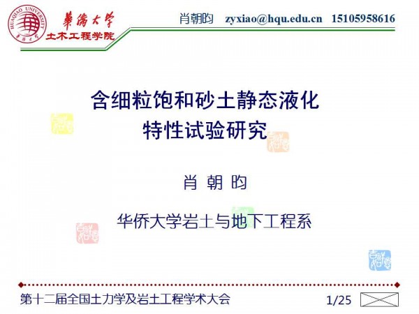 第十二届全国土力学及岩土工程学术大会PPT系列——含细粒饱和砂土静态液化特性试验研究