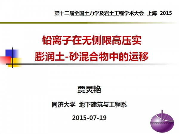 第十二届全国土力学及岩土工程学术大会PPT系列——最新版-铅离子在无侧限高压实膨润土-砂混合物中的运移
