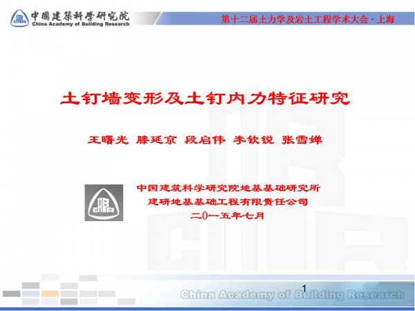 第十二届全国土力学及岩土工程学术大会PPT系列——土钉墙变形及土钉内力特征研究