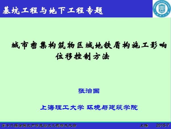 第十二届全国土力学及岩土工程学术大会PPT系列——城市密集构筑物区域地铁盾构施工影响 位移控制方法