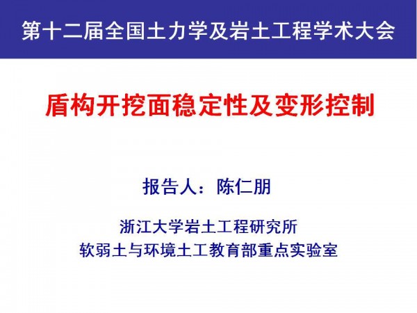 第十二届全国土力学及岩土工程学术大会PPT系列——盾构开挖面稳定性及变形控制