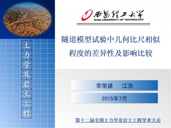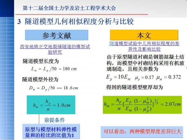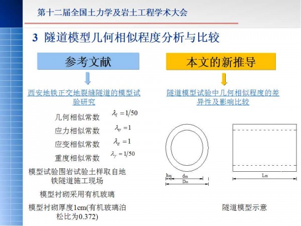 第十二届全国土力学及岩土工程学术大会PPT系列——隧道模型试验中几何比尺相似程度的差异性及影响比较