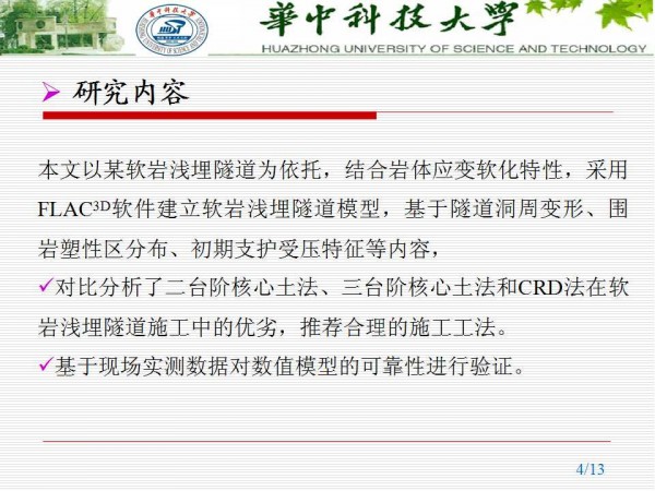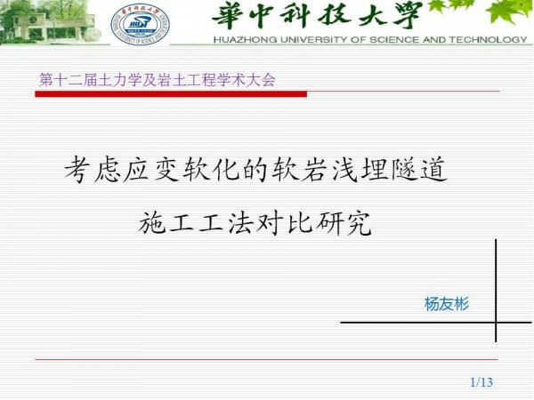 第十二届全国土力学及岩土工程学术大会PPT系列——考虑应变软化的软岩浅埋隧道施工工法对比研究
